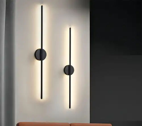 Strip wall lights - either in black or gold - are an elegant lighting solution, ideal for office spaces, especially in hallways and lobbies. Their minimalistic and sleek, unobtrusive appearance enhances the modern aesthetic while providing even, ambient lighting. Typically mounted on the wall, these lights offer a clean, linear form that complements contemporary interiors, creating a calm and professional atmosphere. The subtle glow they emit helps illuminate spaces without overwhelming the room, perfect for high-traffic areas like hallways and lobbies where functional, yet stylish, lighting is essential.